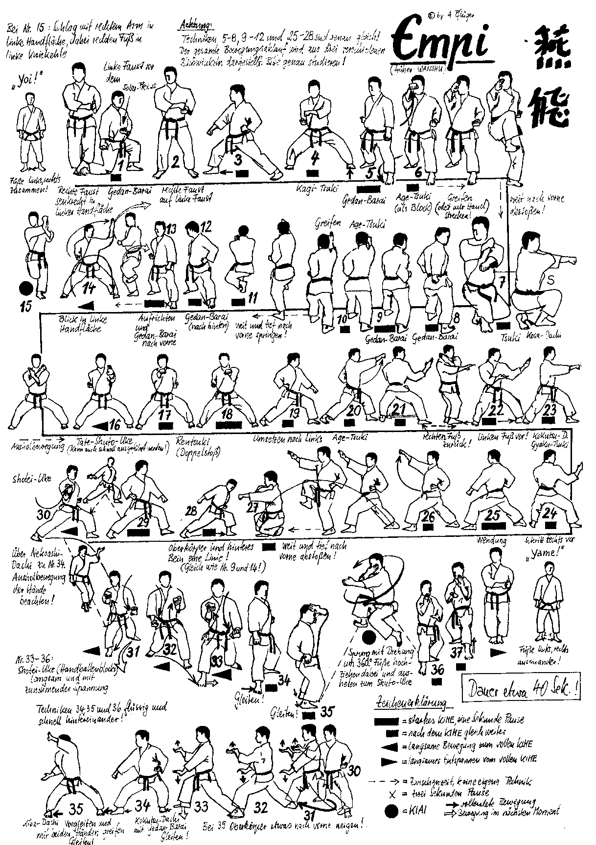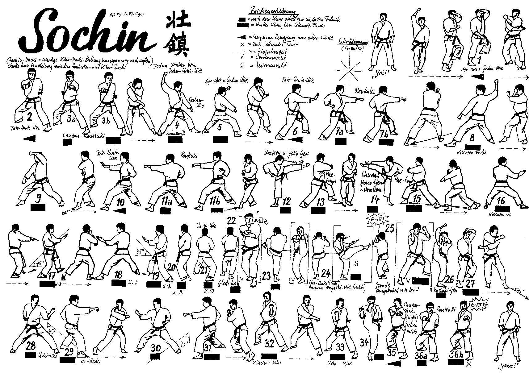 Die Zeichnungen der 27 Shotokan Kata entstammen der Feder von Albrecht Pflüger und werden mit freundlicher Genehmigung der Cocomore AG in Frankfurt veröffentlicht.
